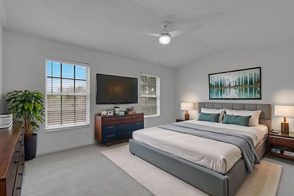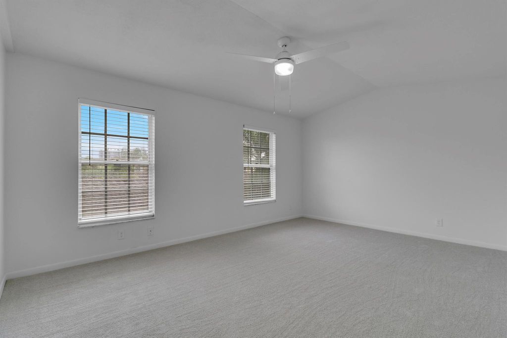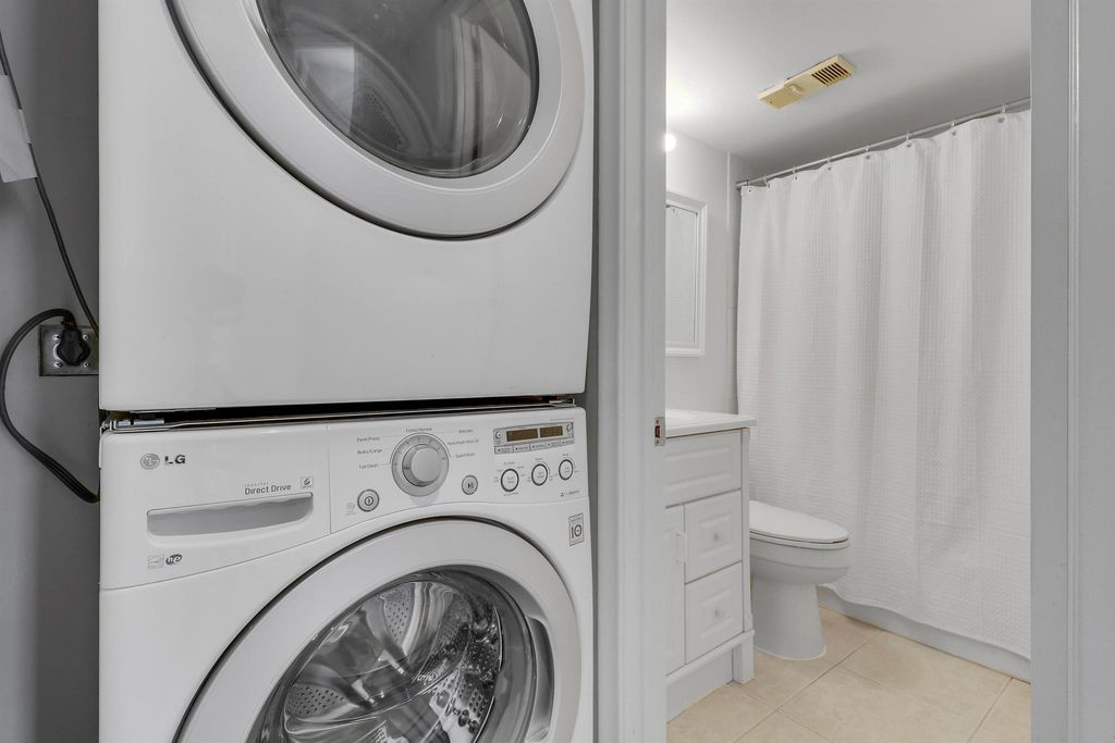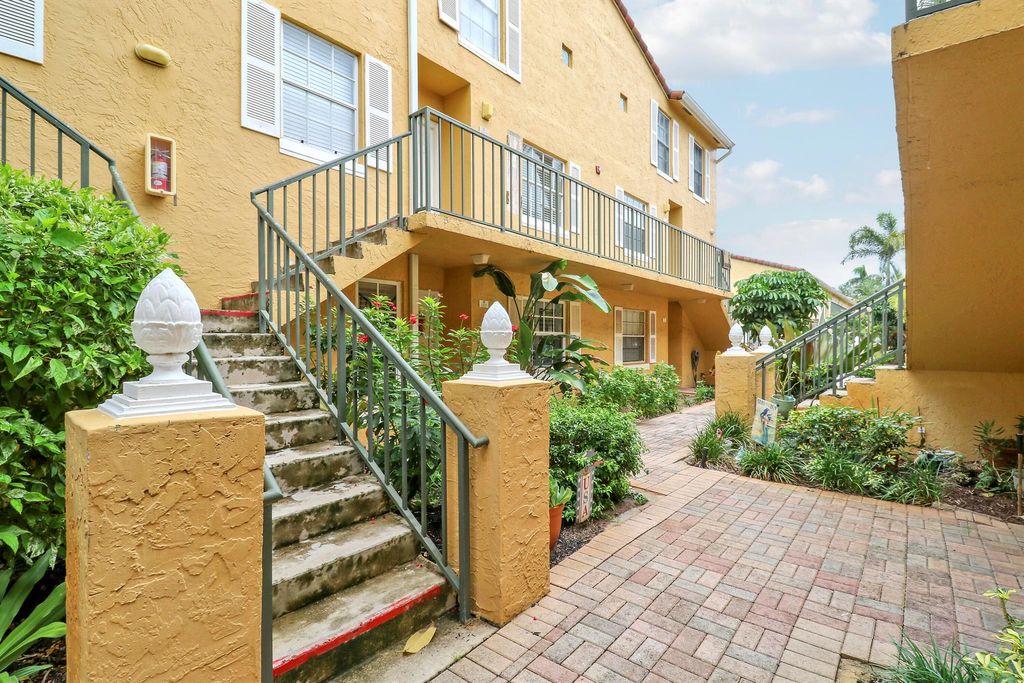 Gated intracoastal community. Second floor, 2-story, SPACIOUS unit w/private master suite on top floor - high ceilings -lives like a townhouse with interior stairs. NEW AC, NEW CARPET, NEW PAINT, Partial impact glass, stainless steel appliances, granite countertops, in unit front load washer/dryer. Assigned parking space. Covered patio overlooking the green. Community pool and clubhouse directly on intracoastal, on-site gym and mgmt office.HOA covers water, cable, pool, clubhouse gym, security gate, roof. No rentals 1st year of ownership.