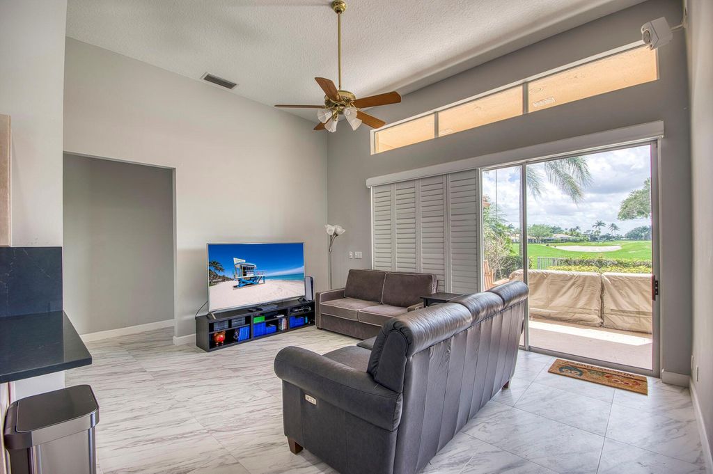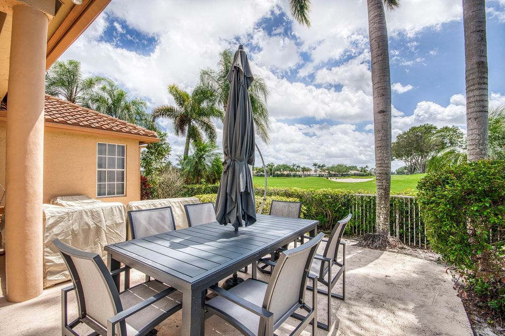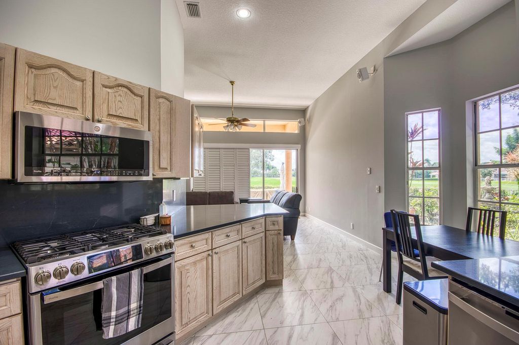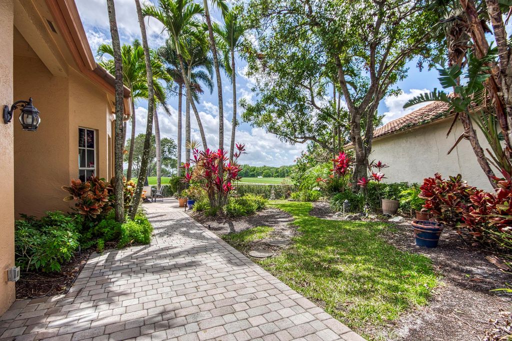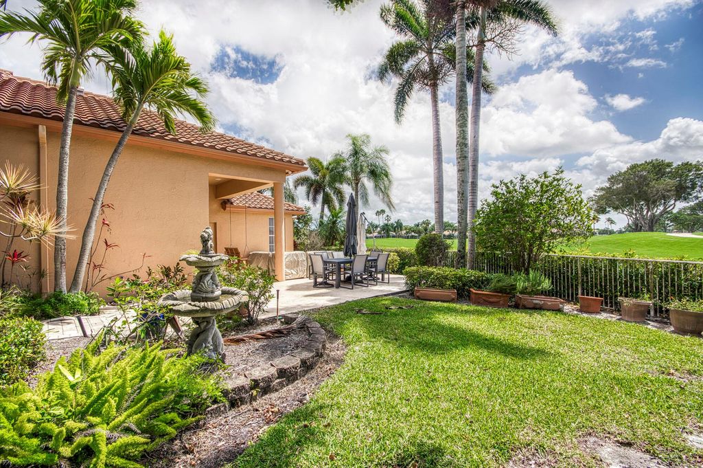 **2021 NEW ROOF** Located on a quiet cul-de-sac, this beautifully maintained home offers stunning golf course views and lush tropical landscaping. The spacious, open layout features vaulted ceilings and new porcelain tile floors throughout, with a bright and airy kitchen that includes 2022 stainless steel appliances, new black quartz countertops, and plenty of cabinet space. The family room opens to a large patio, perfect for entertaining or relaxing while enjoying view of the newly redesigned Heritage course, #1 & #9 fairways. The master suite features tray ceilings, large windows with natural light, and a walk-in closet, while the master bath includes a newly updated, walk-in shower, soaking tub, dual vanities, and a unique stained-glass window of an Ibis. The backyard is fully