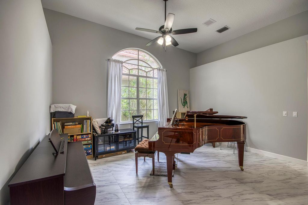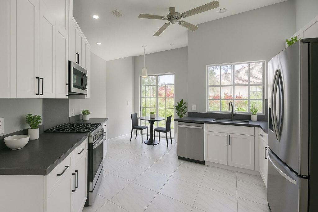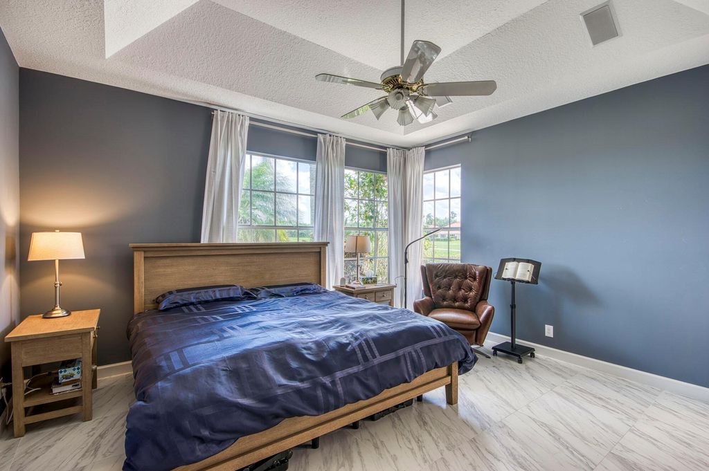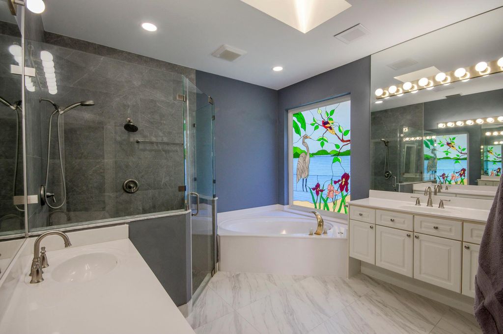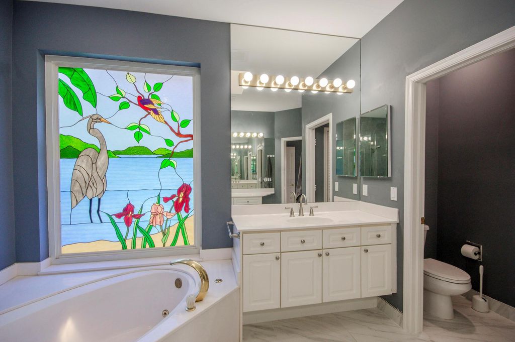 **2021 NEW ROOF** Located on a quiet cul-de-sac, this beautifully maintained home offers stunning golf course views and lush tropical landscaping. The spacious, open layout features vaulted ceilings and new porcelain tile floors throughout, with a bright and airy kitchen that includes 2022 stainless steel appliances, new black quartz countertops, and plenty of cabinet space. The family room opens to a large patio, perfect for entertaining or relaxing while enjoying view of the newly redesigned Heritage course, #1 & #9 fairways. The master suite features tray ceilings, large windows with natural light, and a walk-in closet, while the master bath includes a newly updated, walk-in shower, soaking tub, dual vanities, and a unique stained-glass window of an Ibis. The backyard is fully