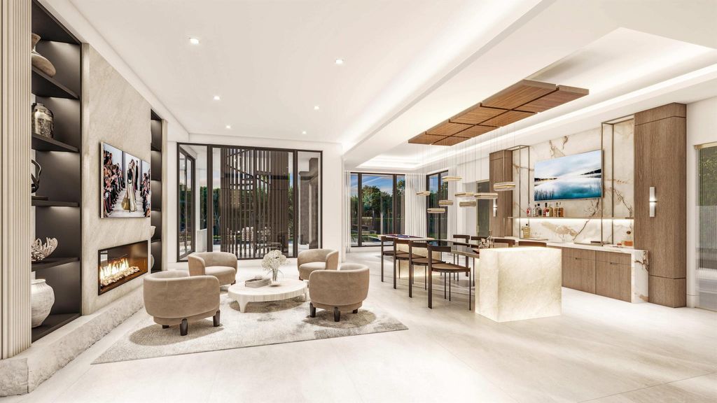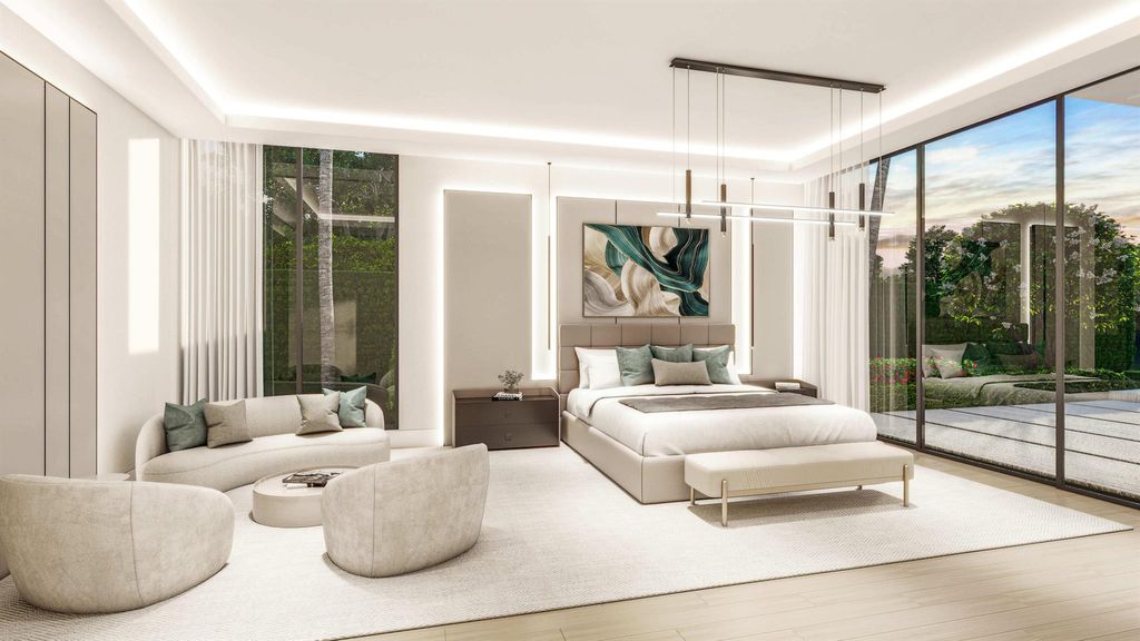 Situated on a premier 1-acre lot in the exclusive custom estate section of Panther National, this exceptional mid-century modern home designed by Affiniti Architects and to be built by Ellish Builders will offer 5 bedrooms, 6 full and 3 half baths, a 6-car garage, home office, media room, club room, and an exercise room, all meticulously crafted using the finest of materials. From the incredibly spacious arrival to the majestic foyer and living room with nearly 22-ft ceilings, thoughtfully designed living and entertainment spaces, and a glass-framed cornucopia of outdoor delight punctuated by a massive resort-inspired infinity pool and lounge areas with panoramic wide-water SE facing views of the ''Big Cat'' golf course, the Muirfield will set a new standard of living in South Florida.