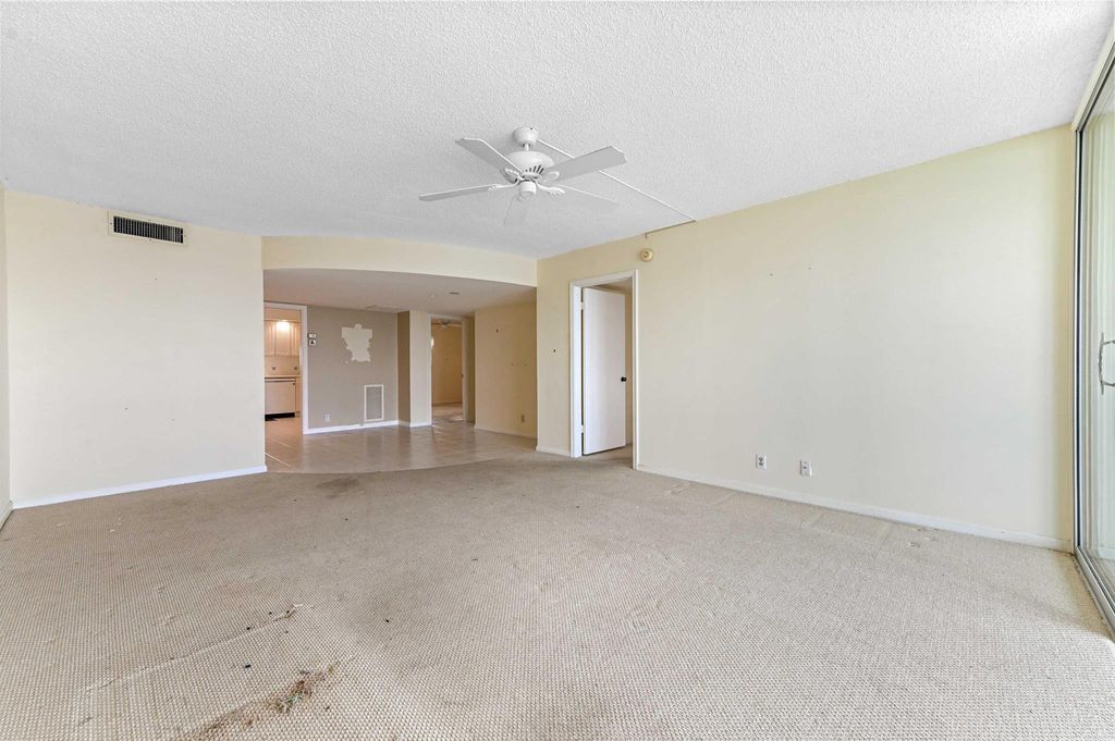 Welcome to this stunning waterfront condo in Lake Harbour Towers, a gated community offering a lifestyle of tranquility and convenience. This residence is a remarkable opportunity to create your dream home with a breathtaking Intracoastal backdrop. The unit is a blank canvas, ready for your personal vision. The spacious layout is bright and open, featuring a beautifully updated kitchen with white shaker-style cabinets, a full suite of white appliances, and an in-unit stackable washer and dryer, providing modern functionality.