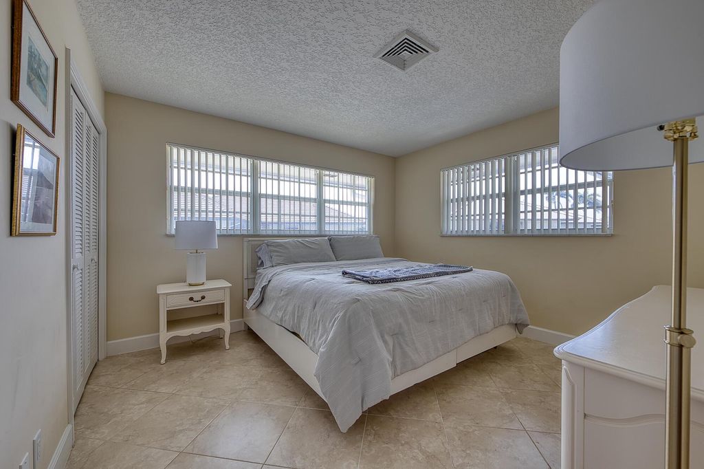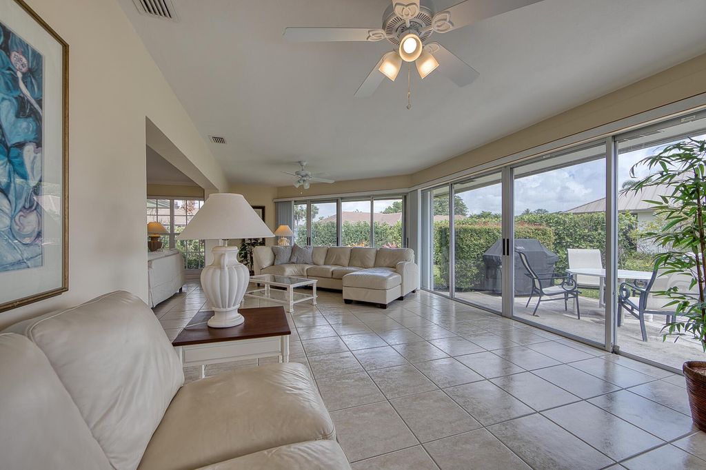 CHARMING 2 BEDROOM, 2 BATH RENOVATED VILLA ON A PREMIER CORNER LOT IN THE GATED CITY OF ATLANTIS!This light-filled villa offers an open, free-flowing layout with a spacious, air-conditioned sunroom--ideal for relaxing, entertaining, or working from home. The beautifully updated kitchen features solid wood cabinetry, granite countertops, and stainless steel appliances. Neutral ceramic tile throughout the main living areas, with warm wood flooring in the primary suite. Additional features include full impact windows, accordion shutters on sliders, a circular driveway, interior laundry room, and ample storage.