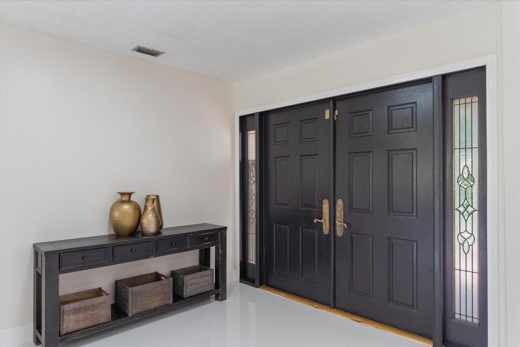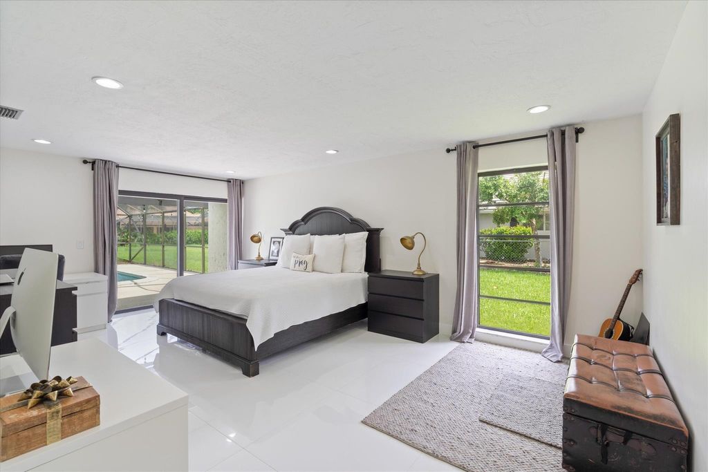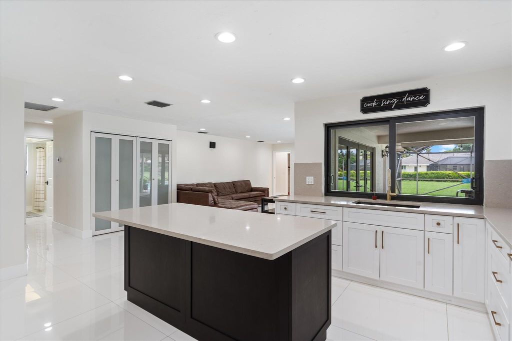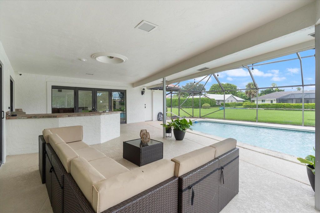 Welcome to the City of Atlantis! Situated on a spacious .32-acre lot backing onto the canal, this home offers both space and potential. The sellers began reimagining the residence--removing walls to open the main living area, installing new flooring throughout, updating the kitchen, and renovating several bathrooms--leaving a head start for a buyer ready to complete the vision. The 3-way split floor plan ensures privacy, while new impact sliders line the entire back of the home, seamlessly connecting indoors to the outdoors. A large covered screened enclosure with pool, generous green space, and a summer kitchen (with water hook-up) create the perfect retreat.The 4-bedroom, 3-bath layout is both functional and versatile. The primary suite is a true retreat with two walk-in closets,