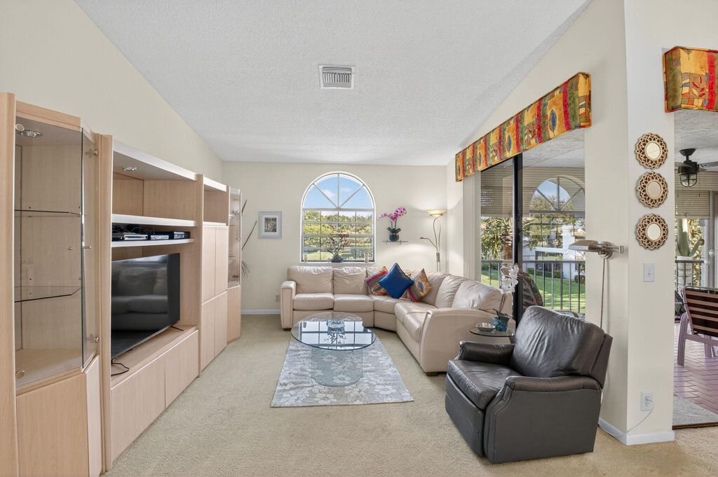 Welcome to this inviting and beautifully maintained second-floor condo, ideally situated between two tranquil lakes. This spacious 3 bedroom, 2 bathroom home offers comfort, style, and convenience in the very popular Platina community. Perfect for full-time living or wonderful vacations in the Florida sunshine, the kitchen boasts a cozy breakfast area and a convenient pass-through to the formal dining area, perfect for entertaining guests. Enjoy a modern quartz vanity in the main bathroom, providing both elegance and durability. Split floor plan for privacy and comfort, featuring vaulted ceilings that add to the open and airy feel. New hot water heater installed for peace of mind and efficiency. Relax on the screen-enclosed balcony, offering beautiful views and a comfortable space.