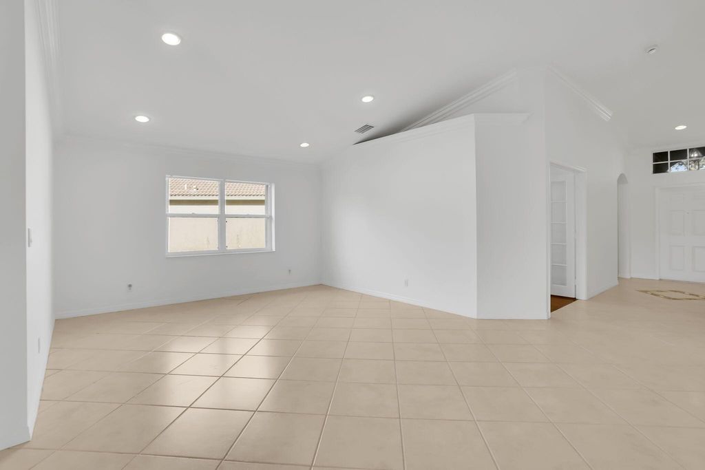 BRAND NEW ROOF! A pristine, move-in-ready Savona Modified in the heart of Venetian Isles' 55+ gated paradise, where resort-style living meets everyday serenity on a quiet cul-de-sac loop. 3-bed, 2-bath, built in 2000 boasts soaring volume ceilings, crown molding, brand-new neutral designer paint, wall-to-wall ceramic tile (zero carpet!), and an open great room that flows seamlessly into a massive screened lanai perfect for sunrise coffee or sunset cocktails. The chef's kitchen shines with rich wood cabinetry and sleek black granite counters, and a sunny breakfast nook, while the split-bedroom layout delivers a tranquil owner's suite with walk-in closet and spa-like en-suite (dual vanes, separate shower). accordion hurricane shutters, and a 2-car garage, pet-friendly retreat is steps