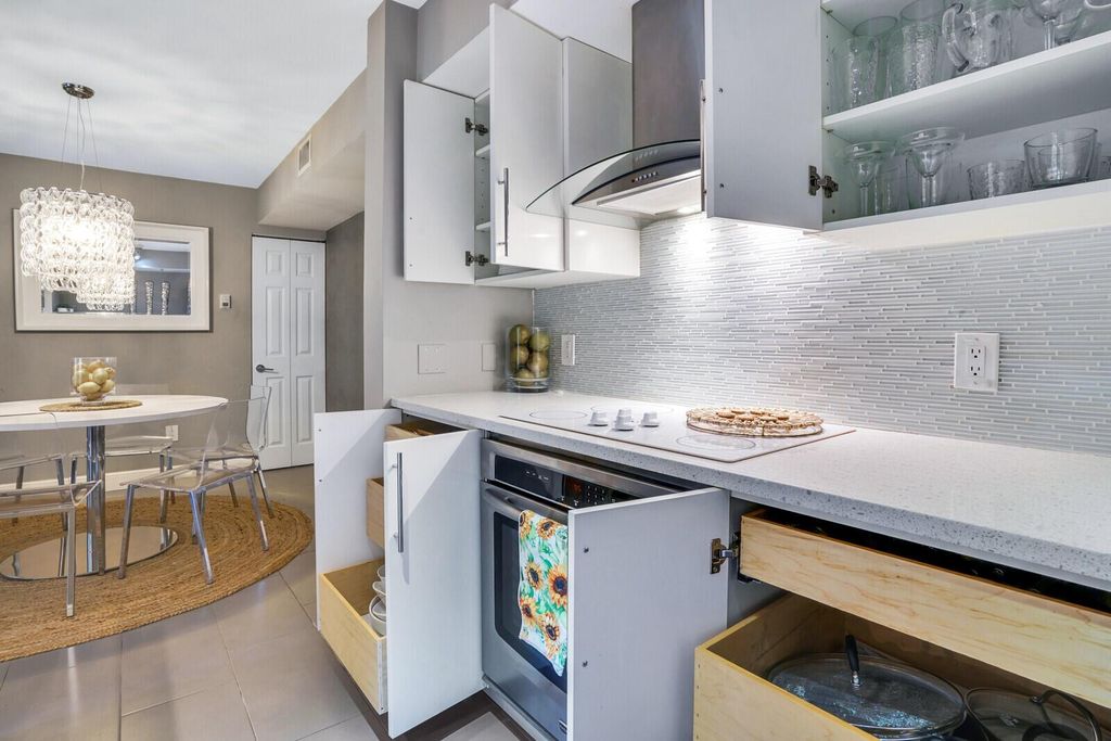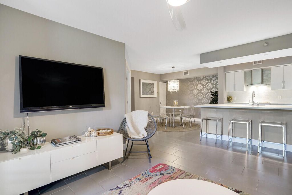 Stunning 2/1 ground-floor condo in the highly sought-after Yacht Club on the Intracoastal. FURNISHED. This beautifully custom-designed, turnkey residence is located in a gated, resort-style community and features a peaceful garden view, a private covered patio perfect for outdoor dining, and an open-concept layout ideal for modern living. The interior showcases a sleek stainless-steel kitchen with quartz countertops, custom cabinetry, designer lighting, and custom wallpaper in the dining area. The spacious primary bedroom includes a generous walk-in closet, and both bedrooms are thoughtfully appointed for comfort and style. Enjoy acres of lush, landscaped grounds and top-tier amenities including two pools directly on the Intracoastal for boat watching and beachy living