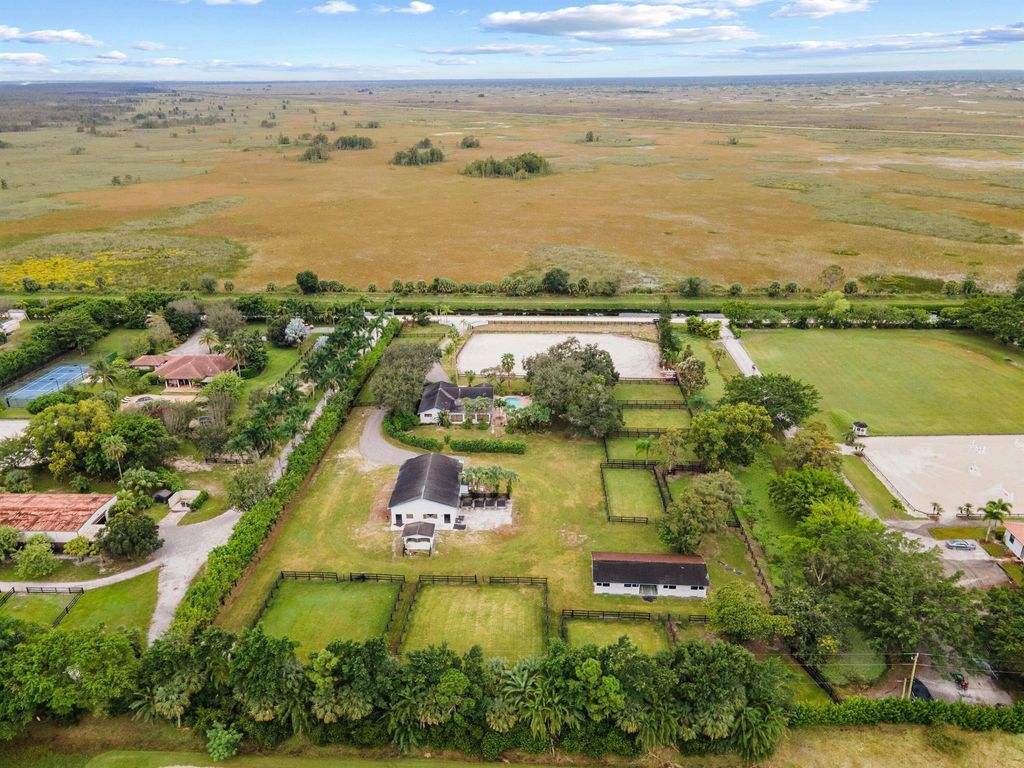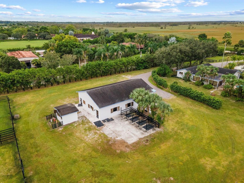 Very private 5 acre property 1 1/2 miles south of main equestrian venues. Turnkey 6 bedroom, 3 bath furnished house with private pool.Equestrian amenities include 220' x 180' ring.Two barns 8 stalls each, and ample room for temporary stalls. 4 wash stalls attached to first barn, tack room, feed shed, 10 large paddocks. Maintenance machinery on site.