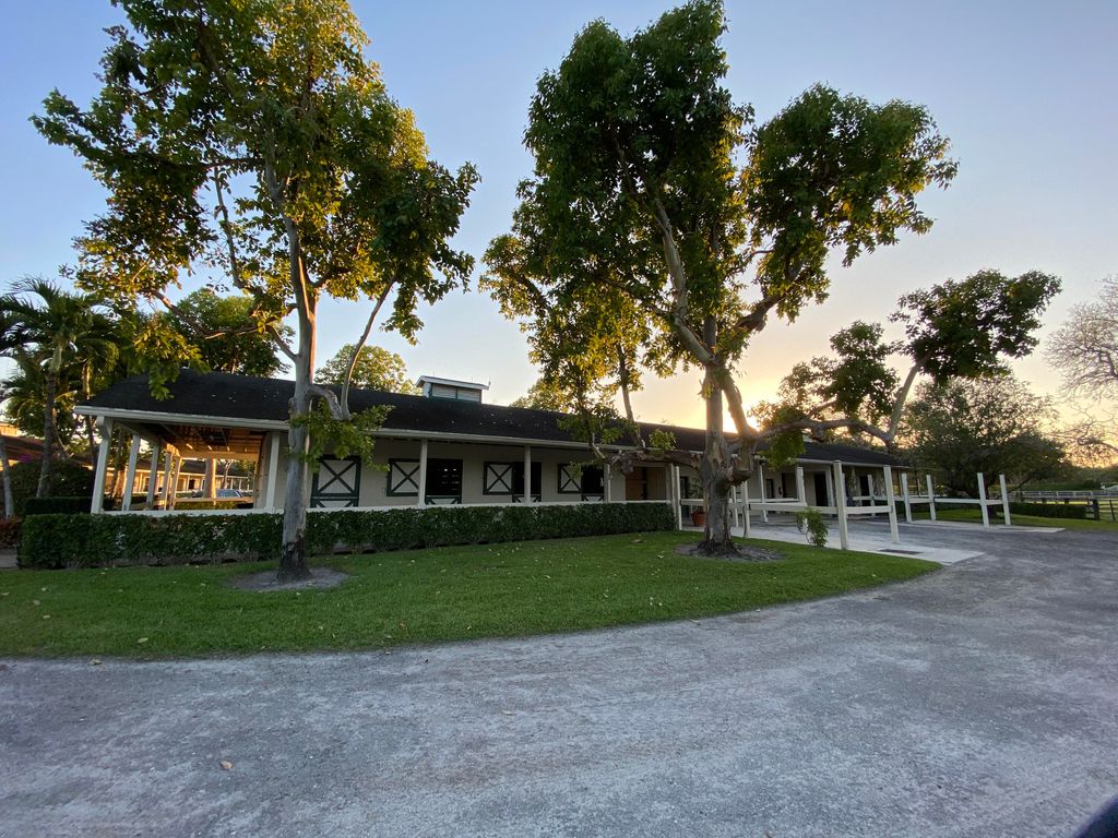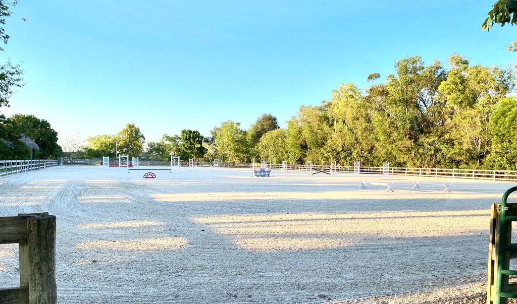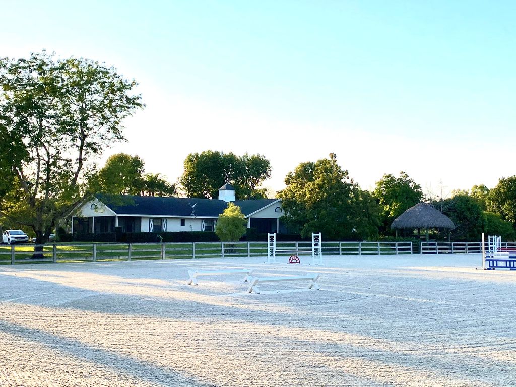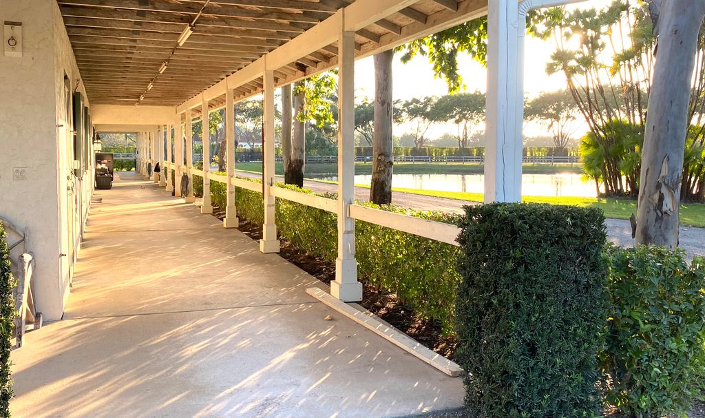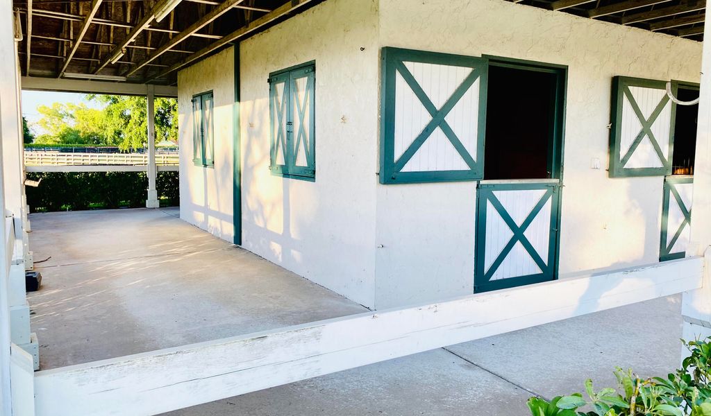 Spectacular equestrian stable on 20 acres available for seasonal lease, located just minutes from the Winter Equestrian Festival (WEF). This exceptional property offers a professional-grade setup for the discerning equestrian.The property features two separate barns, each with 16 stalls, providing a total of 32 stalls. Currently, 8 stalls are available for the season. Both barns overlook a beautiful lake and are fully equipped with their own tack room, a large feed room, and four wash stalls, ensuring convenience and efficiency for all barn operations.Riding amenities are truly premier, including a massive 150x300-foot sand ring with professional Premier Pro-tex footing. Riders will also appreciate the seven-acre irrigated, all-weather grass field, perfect for flatwork or gallop
