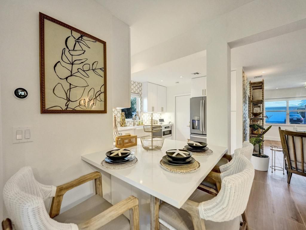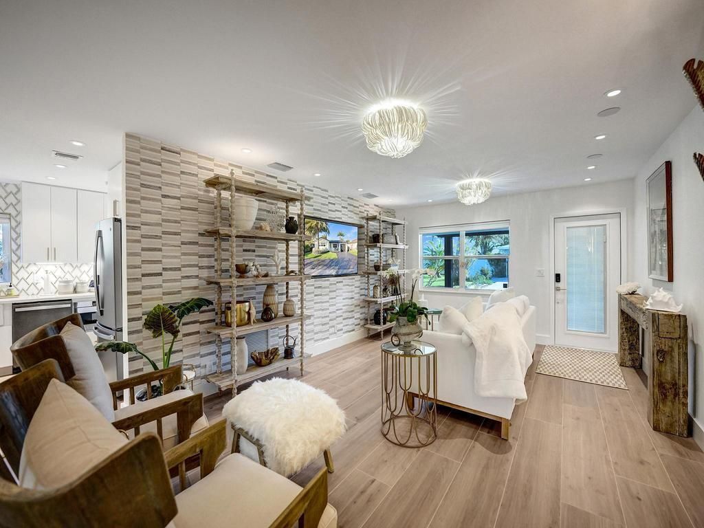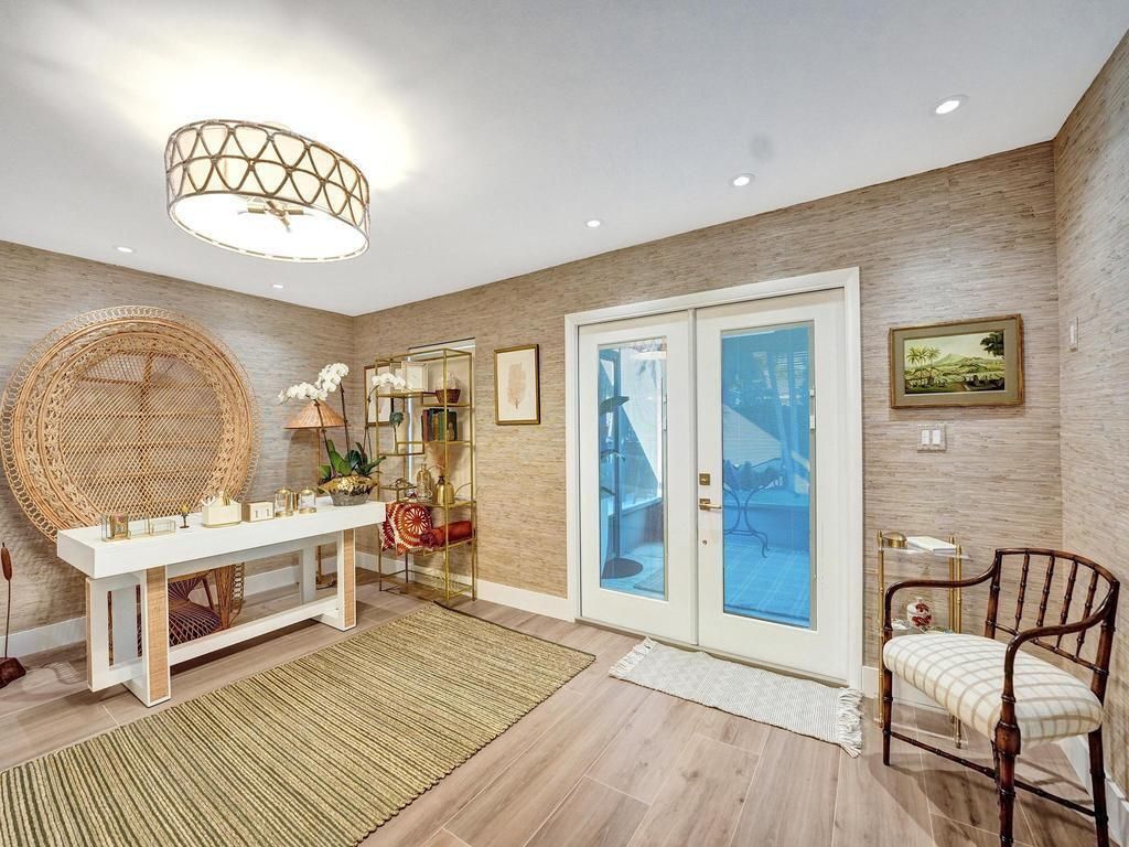 Step into this exquisite, meticulously designed, and fully renovated 3-bedroom, 3-bathroom sanctuary crafted by the esteemed interior designer, Jeanne Michelle Design of Palm Beach Florida. Embrace Coastal living at its finest, adorned with tasteful textured wallpaper in bedrooms themed with a fresh and clean design, complemented by high-quality furnishings, fine antiques and nature-inspired accessories that effortlessly evoke seaside elegance. This Turnkey Gem is presented fully furnished, leaving no detail overlooked, ensuring a seamless move-in experience